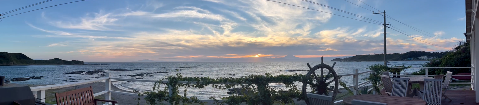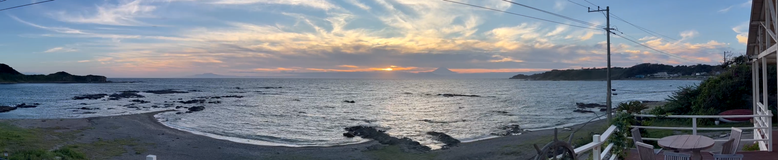 ビーチまで徒歩5秒の開けたロケーション 崖ロケで有名な黒崎の鼻からも見えるスタジオです 天気が良ければ富士山や夕日も綺麗に見えます。有名会社のCMや撮影にも多数使用して頂いています。